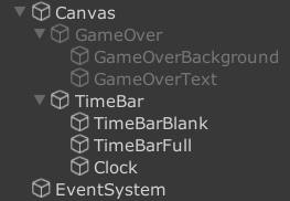 이제 타임바가 일정 시간마다 줄어들고, 시간이 다 되면 게임 오버 화면을 띄우는 스크립트를 작성하겠습니다.