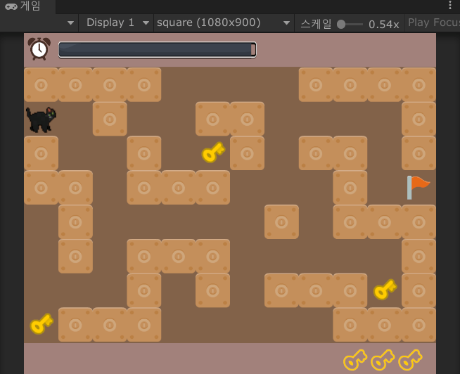 이전 포스트에서 말했듯이 클리어 조건은 2가지로 모든 열쇠 획득과 골 지점에 도착하는 것이었습니다.