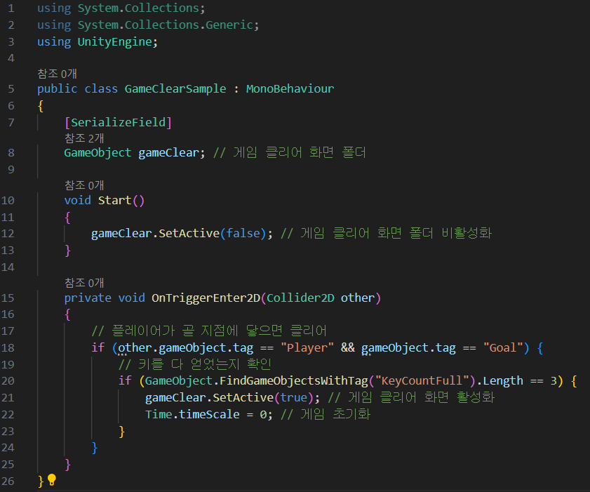 [Unity] 2D 미로찾기 게임 만들기 #05 - 클리어 조건(키 획득) (0) | 2024.08.21 |