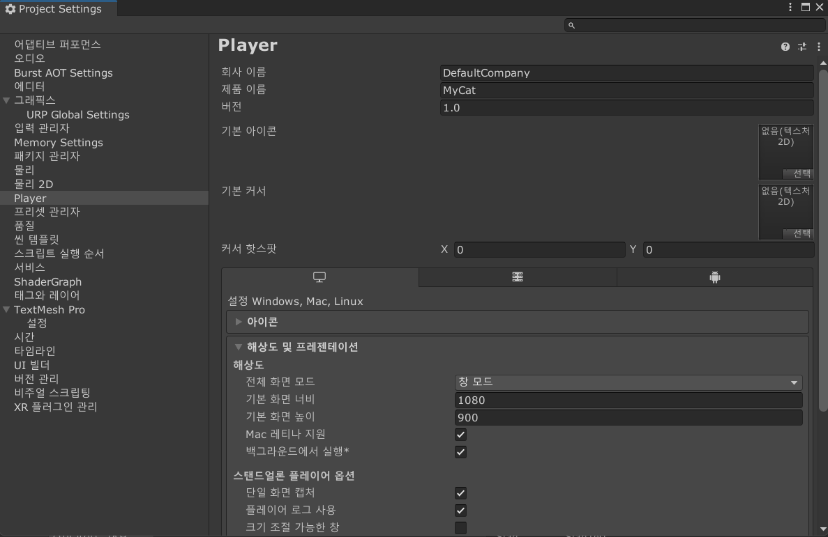 - 플레이어 설정(아이콘, 해상도 등 설정)