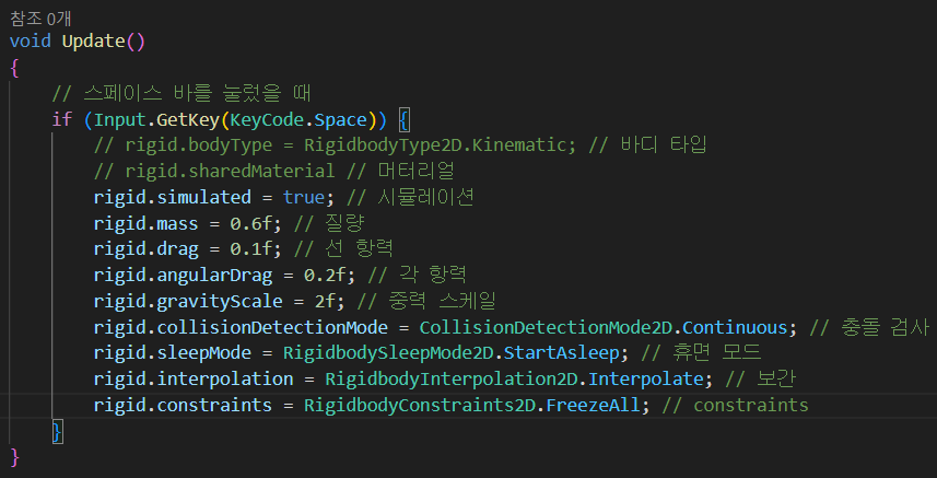 4. 스크립트에서 Rigidbody2D 접근 방법