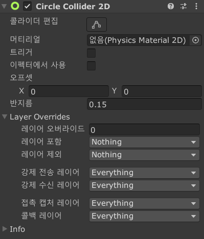 Info | 오브젝트의 Circle Collider 2D 정보 |